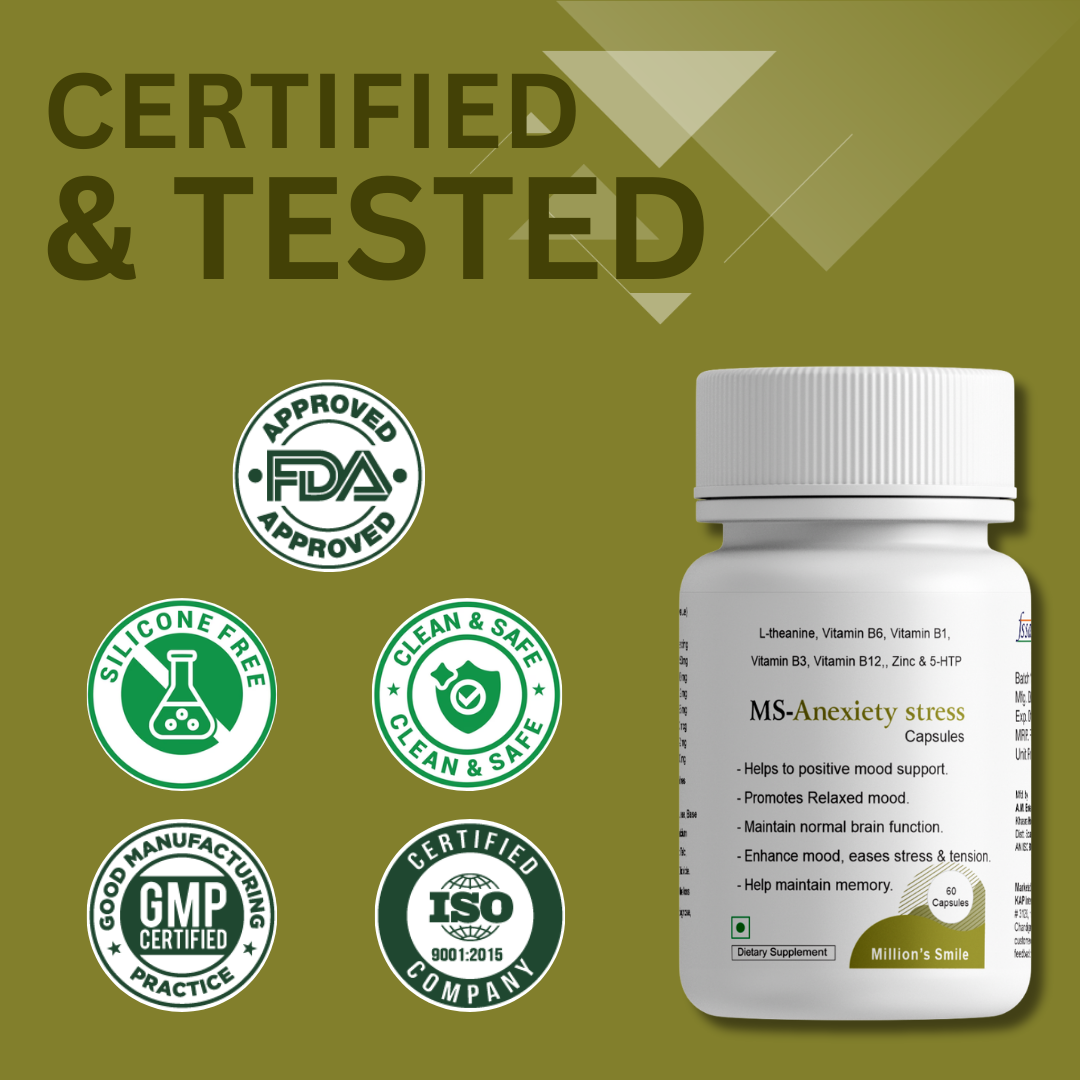 Support your stress management and mental wellness naturally with MS - Anxiety Stress Capsules, the effective way to promote relaxation, balance, and overall vitality!