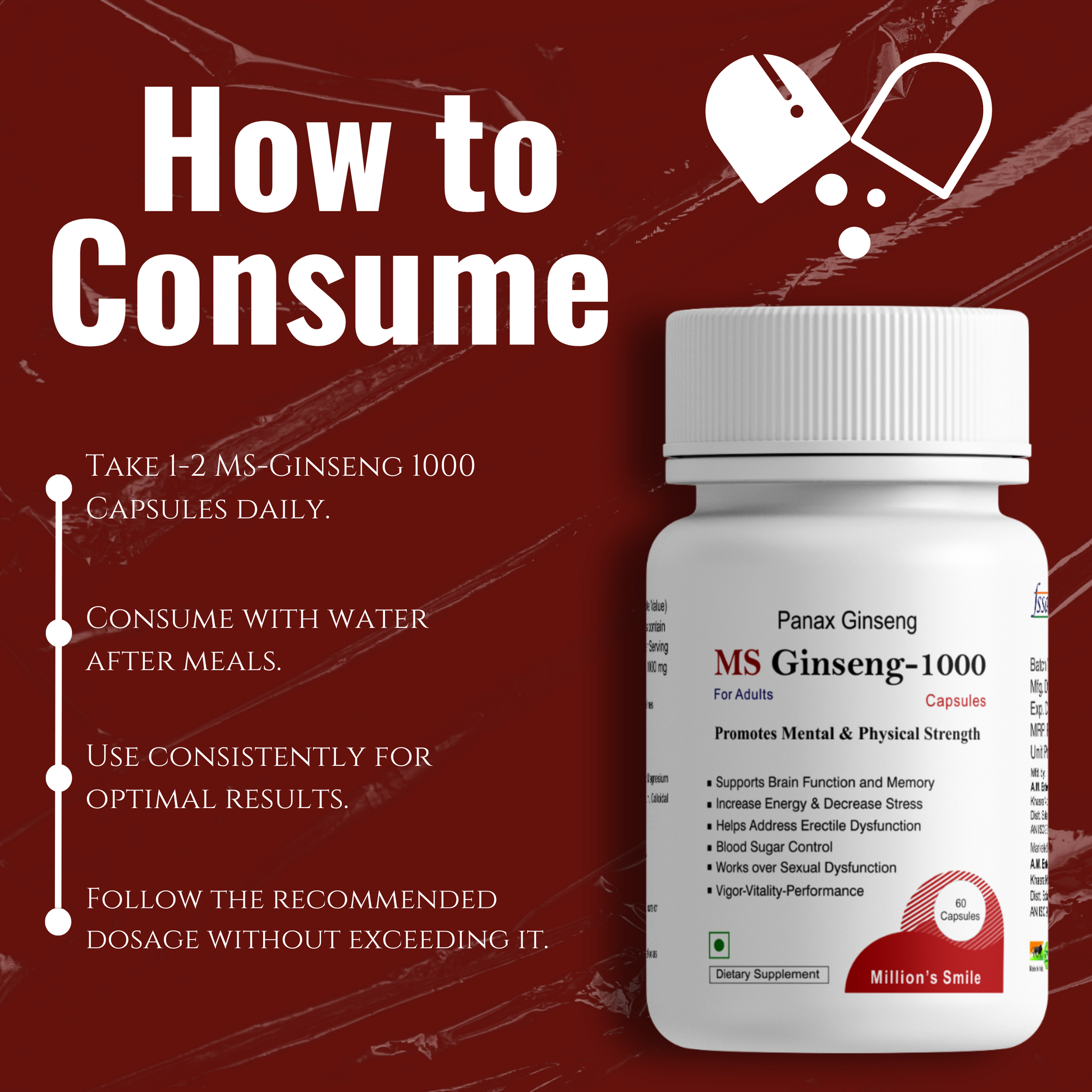 Boost your vitality and sharpen your mind with MS - Ginseng 1000 Capsules, your go-to for daily energy and wellness.