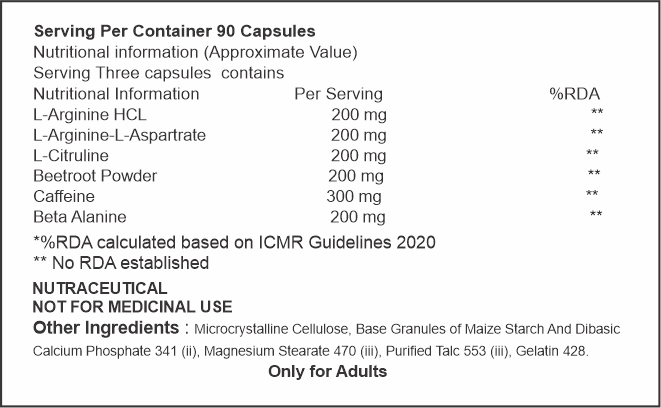 - High-Quality Ingredients: Each capsule is crafted with potent ingredients known for their role in boosting nitric oxide levels and enhancing athletic performance.